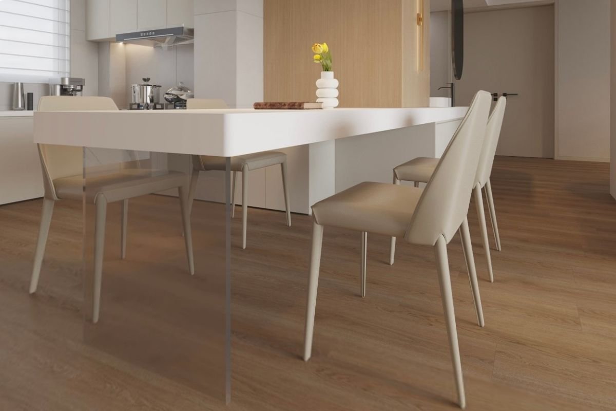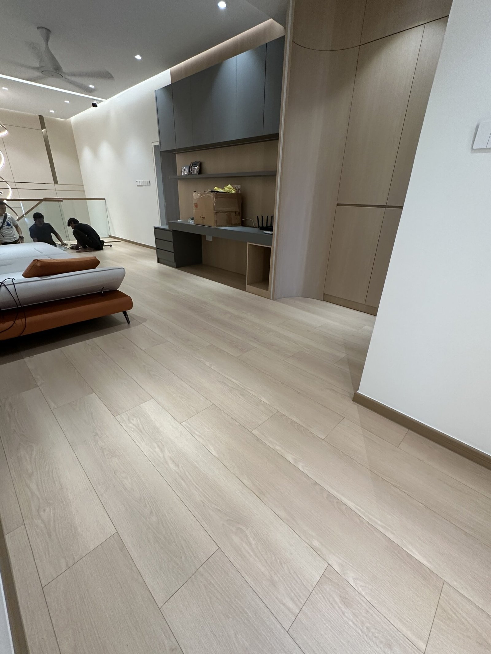 Modern minimalist SPC flooring aligns with the growing trend of homes prioritizing calmness, natural light, and open movement. This flooring style supports interiors that focus on balanced proportions, uncluttered surfaces, and harmonious colors. Because it avoids heavy patterns and overly prominent wood grains, it maintains the visual gentle flow that minimalism requires.