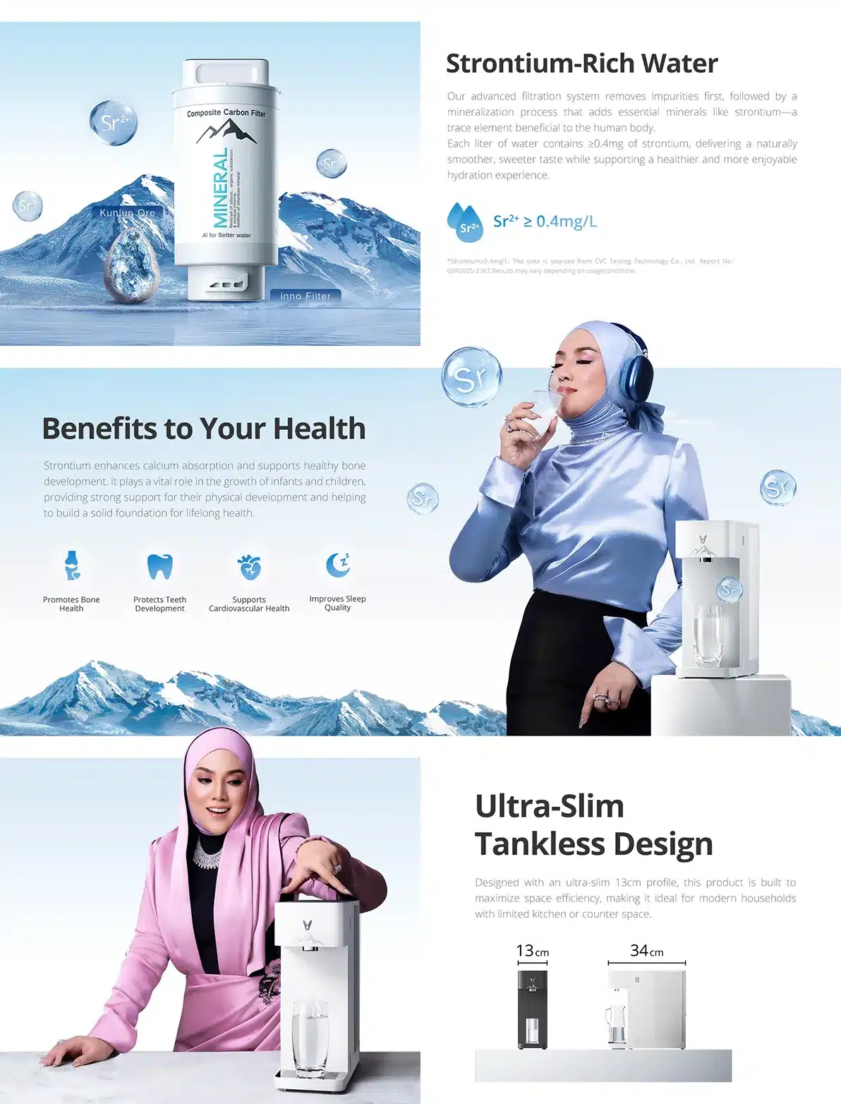 Once you know it fits, you need to understand what is actually inside the water. Most filters just focus on making water “pure,” but the Viomi Inno Water Purifier does something a bit different. It uses a mineralization process to add Strontium back into the water. If you follow the Shila Amzah endorsed smart water purifier ads, you might have heard about this. Strontium is a trace element that helps with bone strength and dental health. It is especially beneficial if you have young children or elderly parents at home who need extra bone support.